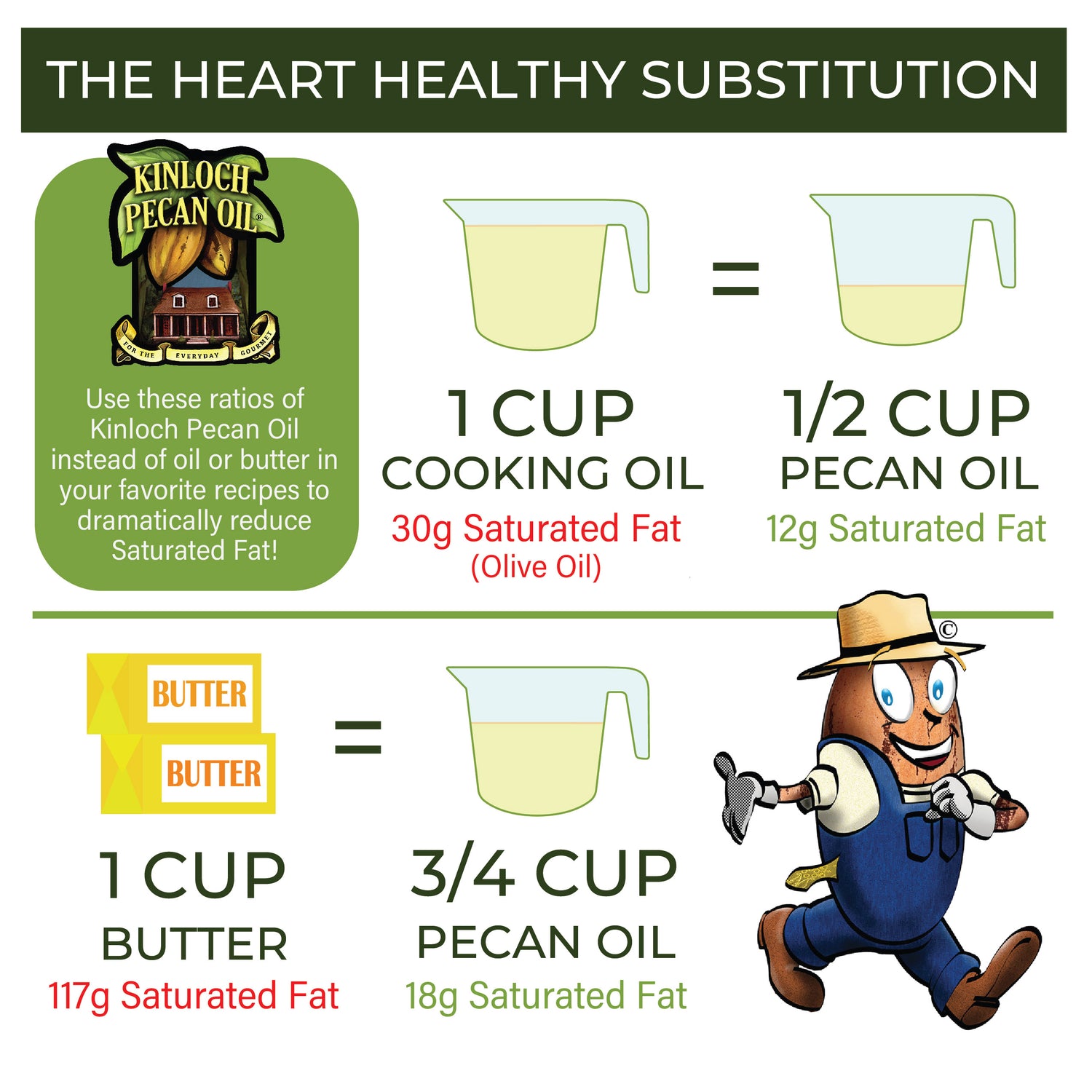 Substitute Pecan Oil in your favorite recipes. Cooks up healthier with the same amazing taste and uses less!